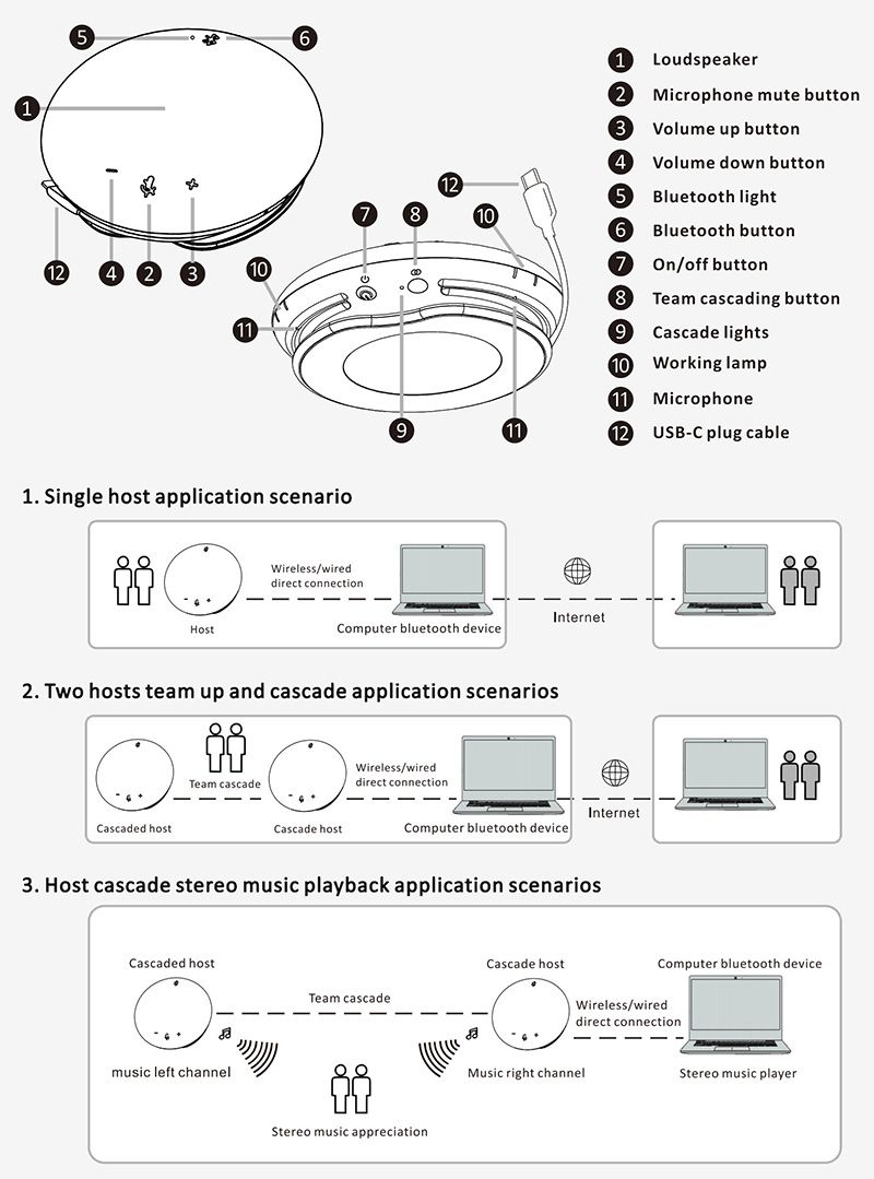 The omnidirectional microphone is easy to carry, plug--play, provides instant communication. It has a built-in lithium battery with a battery life of up to 8-10 hours is suitable for various small medium-sized conference scenarios.