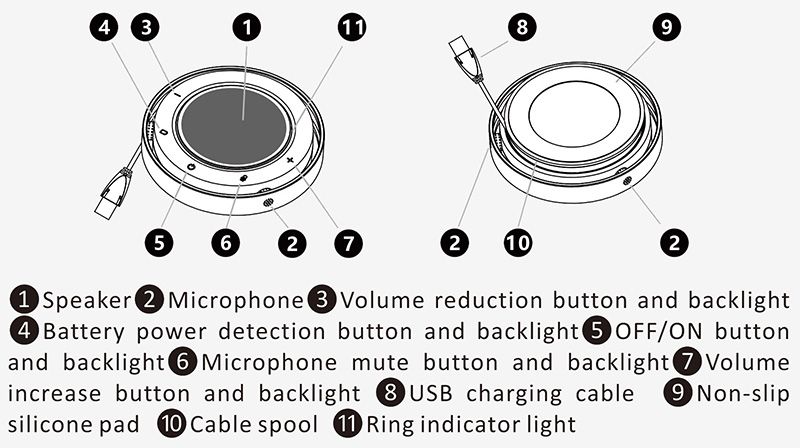 The easy-to-carry, plug--play, instant messaging omnidirectional microphone has a built-in lithium battery life of up to 8 hours, which is suitable for various small medium-sized meeting scenarios