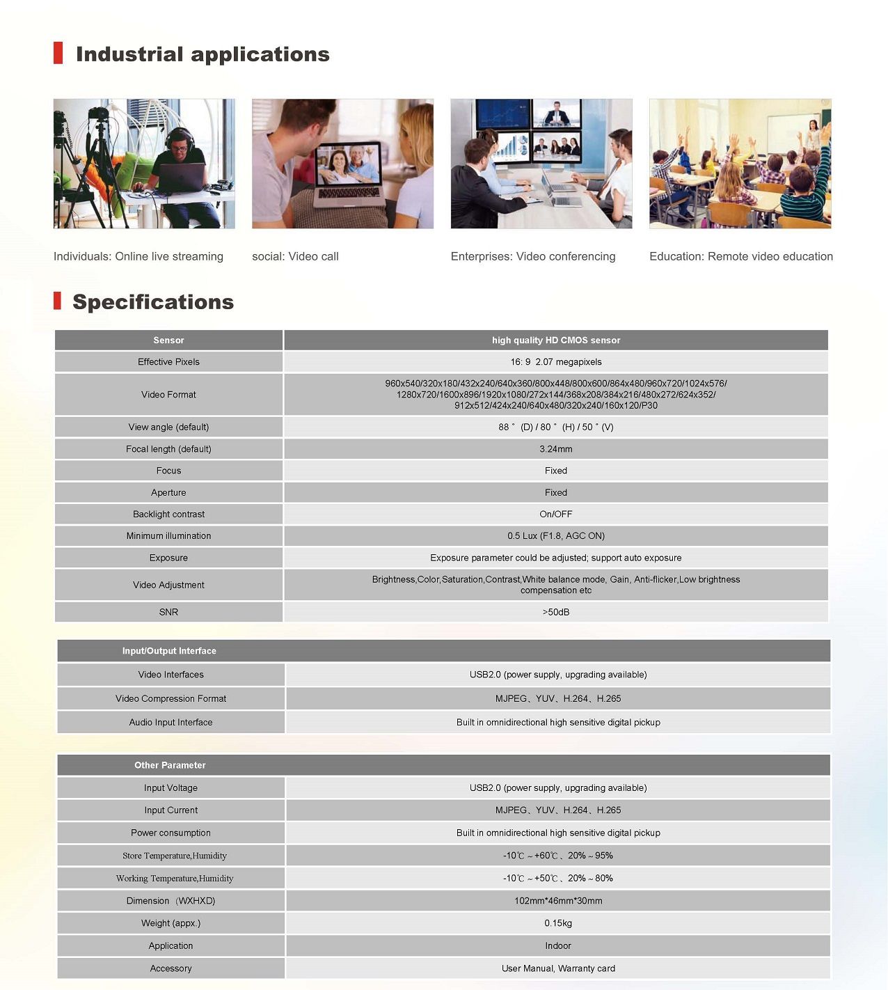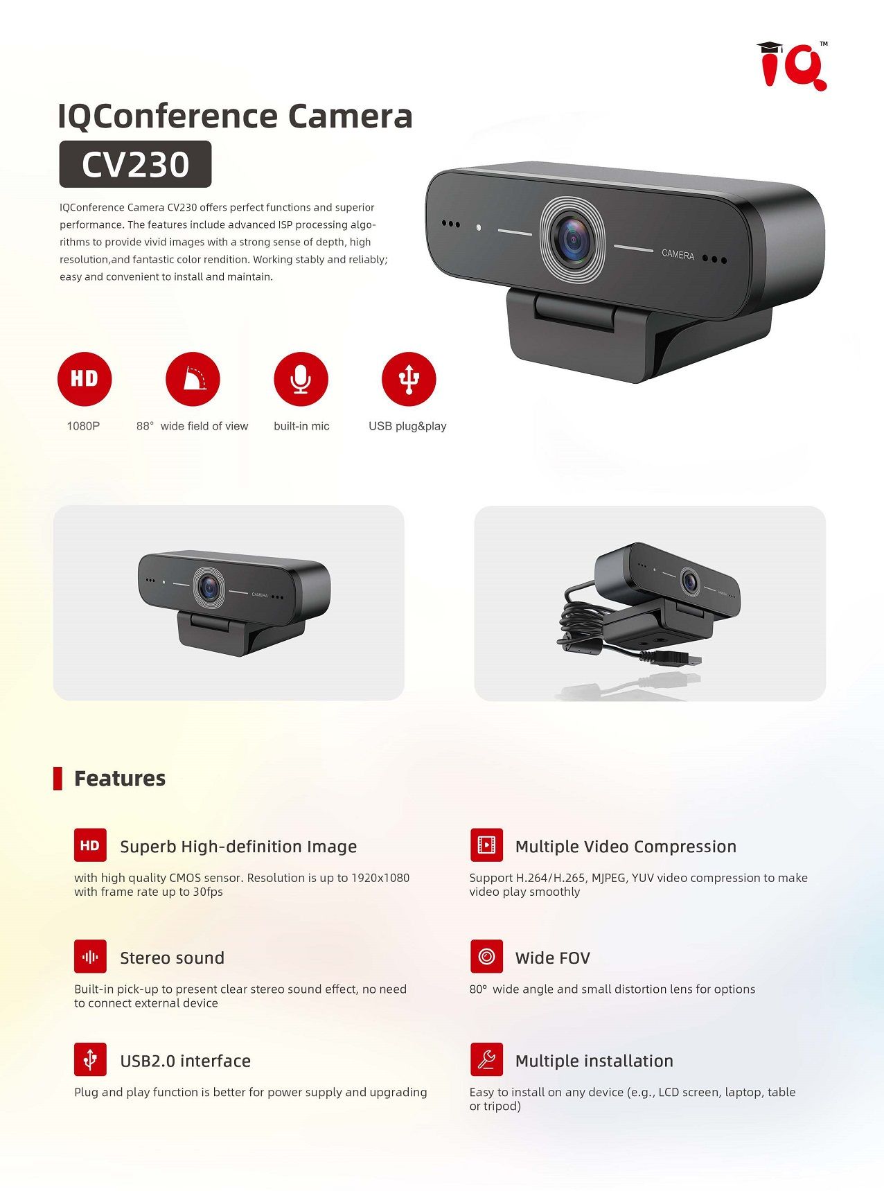IQConference Camera CV230 offers perfect functions and superior performance. The features include advanced ISP processing algorithms to provide vivid images with a strong sense of depth, high resolution,and fantastic color rendition. Working stably and reliably; easy and convenient to install and maintain.