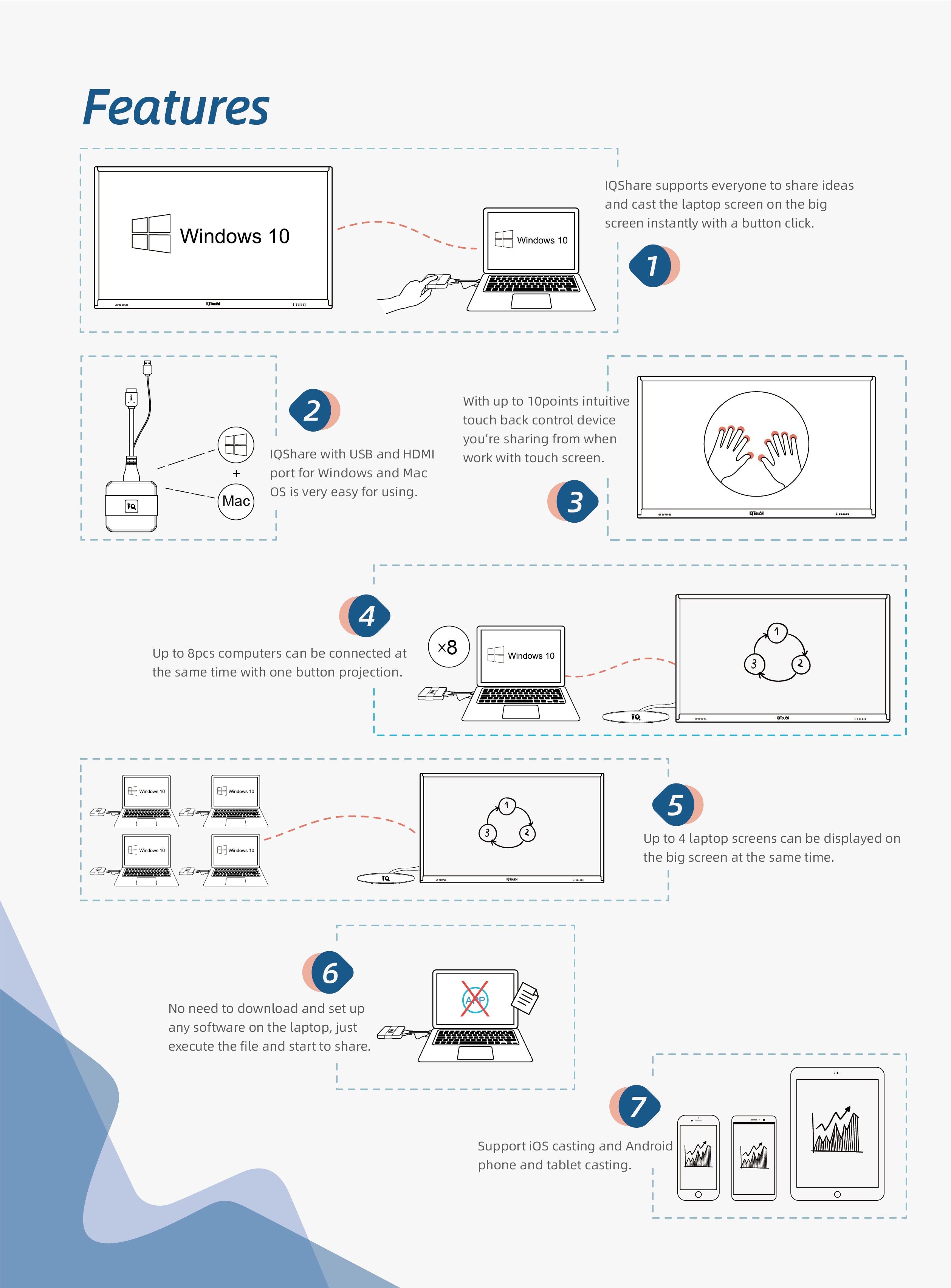 Interactive Document Camera is a completely new concept design and mobile visualizer. The touch capability on IQTouch and IQBoard, IQView E3511 Document Camera can be freely used for presentations anywhere in or out of the classroom or office.