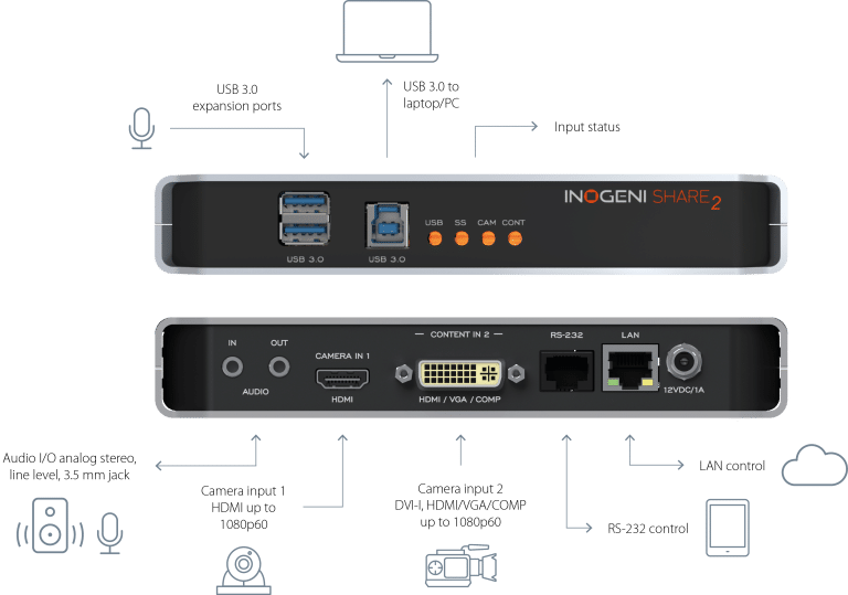 Inogeni SHARE2U Mix 2 USB or HDMI cameras to USB 3.0